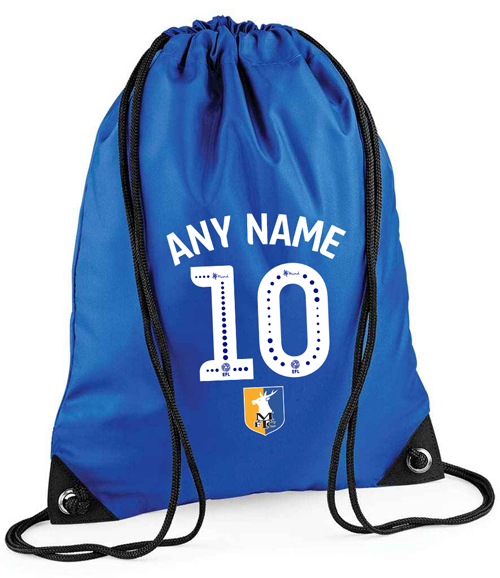 Our drawstring gym bags are handy for school, day trips or going to the gym whilst showing your support for the team. The perfect Gift for kids our personalised Mansfield Town Gym bags are lightweight & durable.